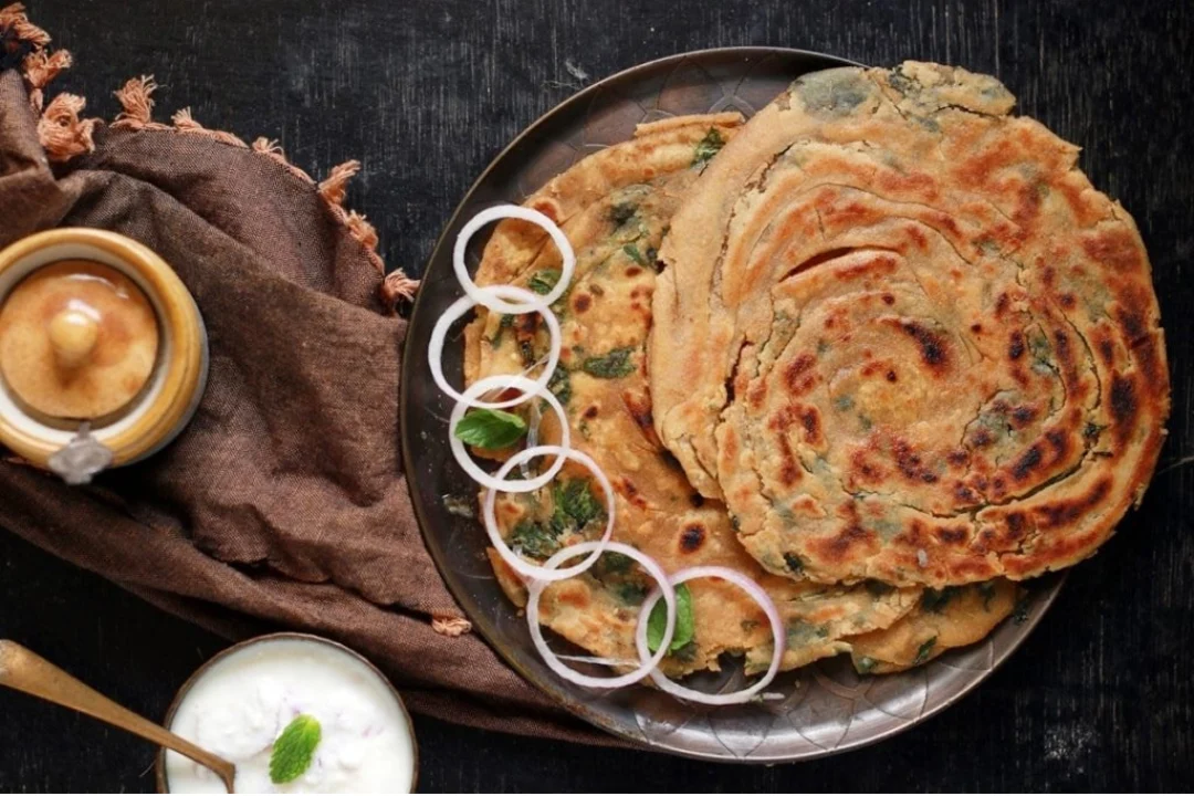 Minty Pudina Parantha: Flaky, aromatic, spiced, buttery Indian flatbread delight.