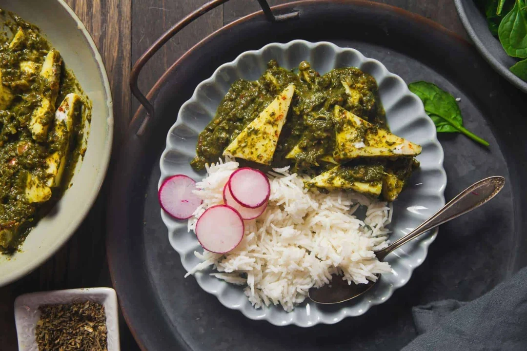 Fragrant Rice with Palak Paneer: Creamy, spinach-infused, savory Indian delight.