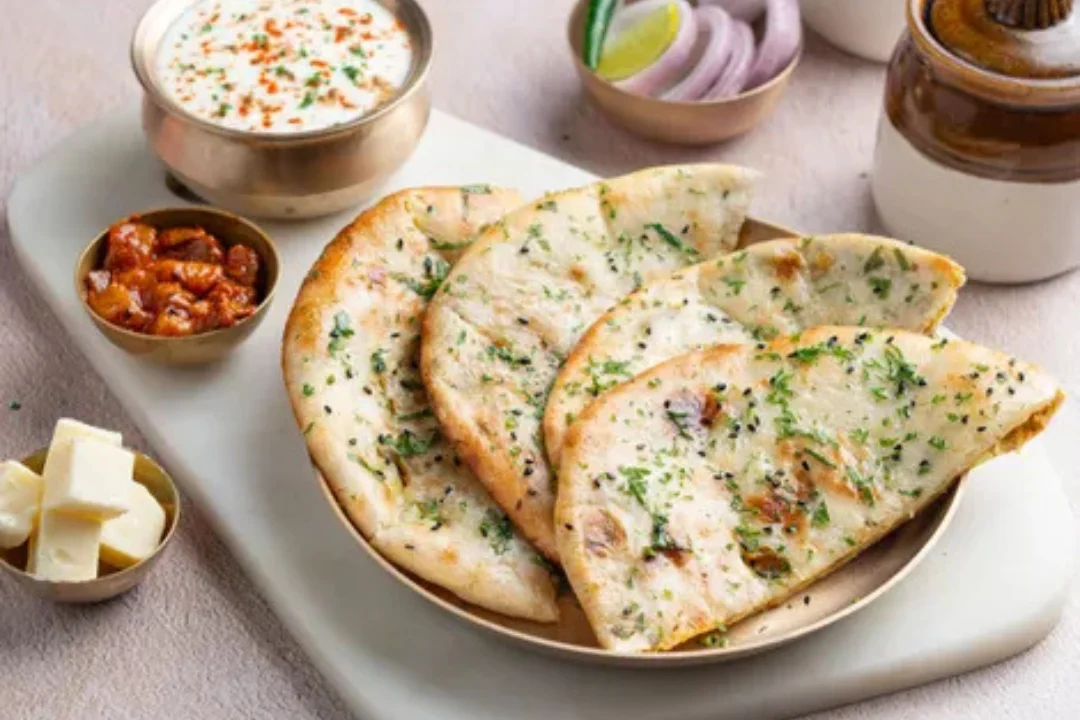 Flavorful Tandoori Aloo Pyaz Parantha with Pickles: Spiced, crispy, tangy delight.